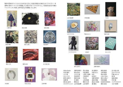 太湯雅晴、平澤賢治、石井亨、岩田俊彦、金氏徹平、小磯達也、牧田愛、三田村光土里、MOECO、中根航輔、大竹寛子、ただ、立石従寛、ザ・ビークル (アルファベット順)